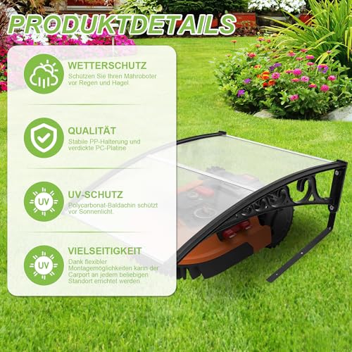 - MAYOR SEGURIDAD: Gracias a la superficie inclinada del techo de la cubierta del Robot cortacésped, la lluvia simplemente se escurre hacia atrás. Además, hay una protección de los bordes en todo el perímetro para evitar lesiones a los animales, a las personas y daños al robot